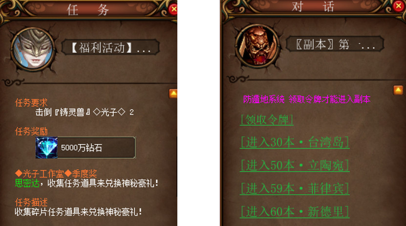 限时挑战:新区特别推出了限时挑战任务,完成这些任务不仅能提升您的实力,还能获得独特的称号和奖励。